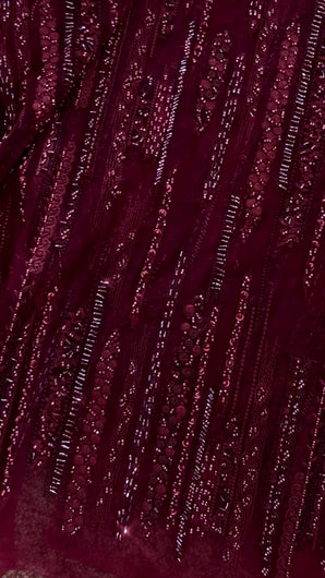 The most beautiful maroon beaded fabric available for ONE CUSTOM MADE DRESS